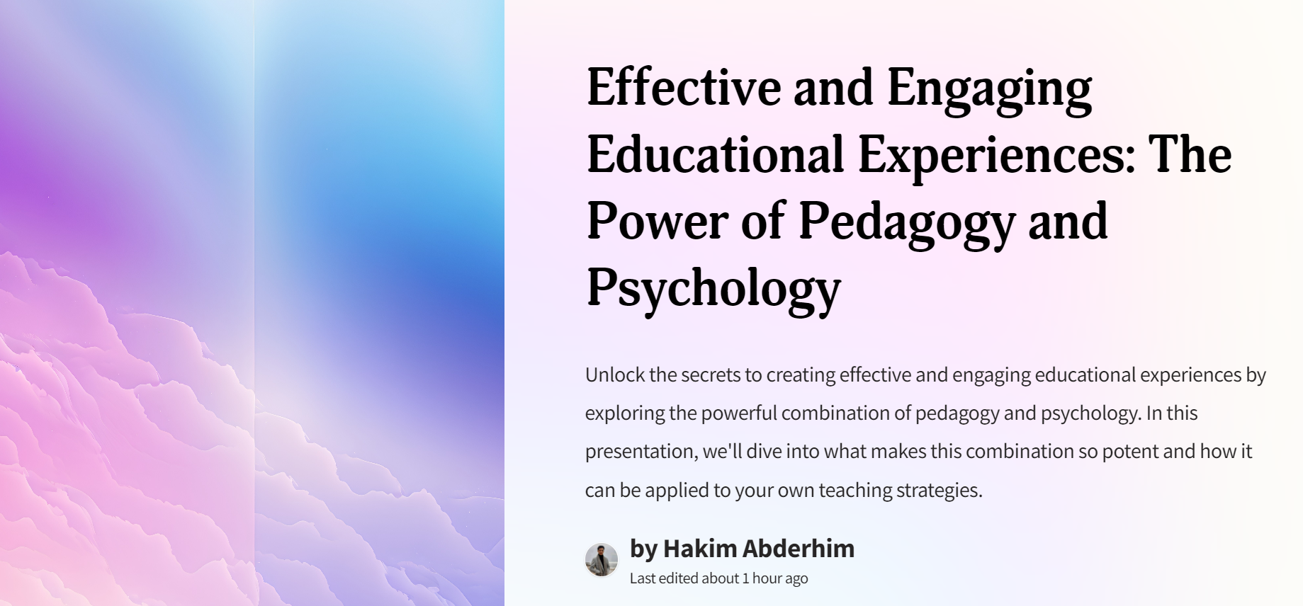 Effective and Engaging Educational Experiences: The Power of Pedagogy and Psychology on April 01, 2023 Get link Facebook X Pinterest Email Other Apps Effective and engaging learning experiences Comments